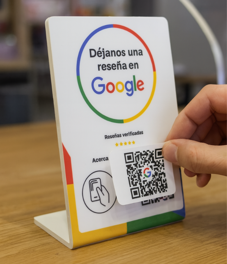 Stand acrílico JUSTAP® con NFC para reseñas de Google