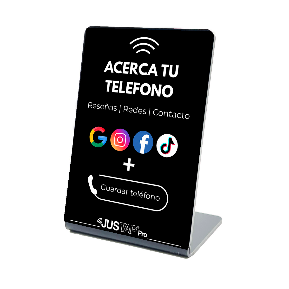Mejora el posicionamiento de tu negocio en internet como nunca con EL ORIGINAL y exclusivo stand para reseñas JUSTAP®. Aumenta tus reseñas de Google hasta un 25% rápidamente con tan solo acercar el teléfono. No dejes pasar la oportunidad de ver crecer tu negocio y obtener nuevas reseñas reales rápidamente.